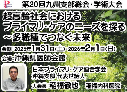 第20回日本プライマリ・ケア連合学会九州支部総会・学術大会の開催にあたり、ご挨拶申し上げます。