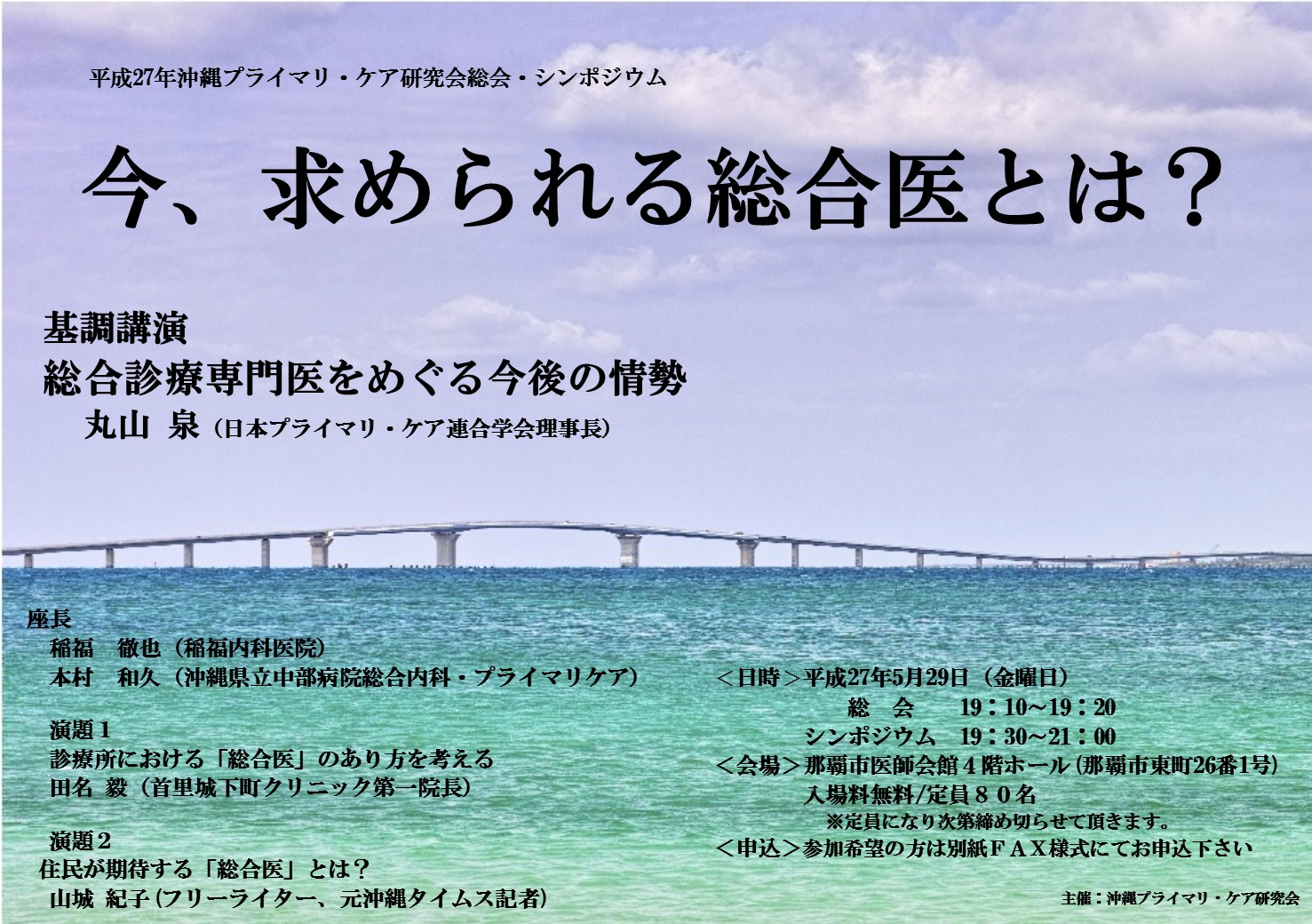 平成27年度 沖縄プライマリ・ケア研究会総会・シンポジウムのご案内